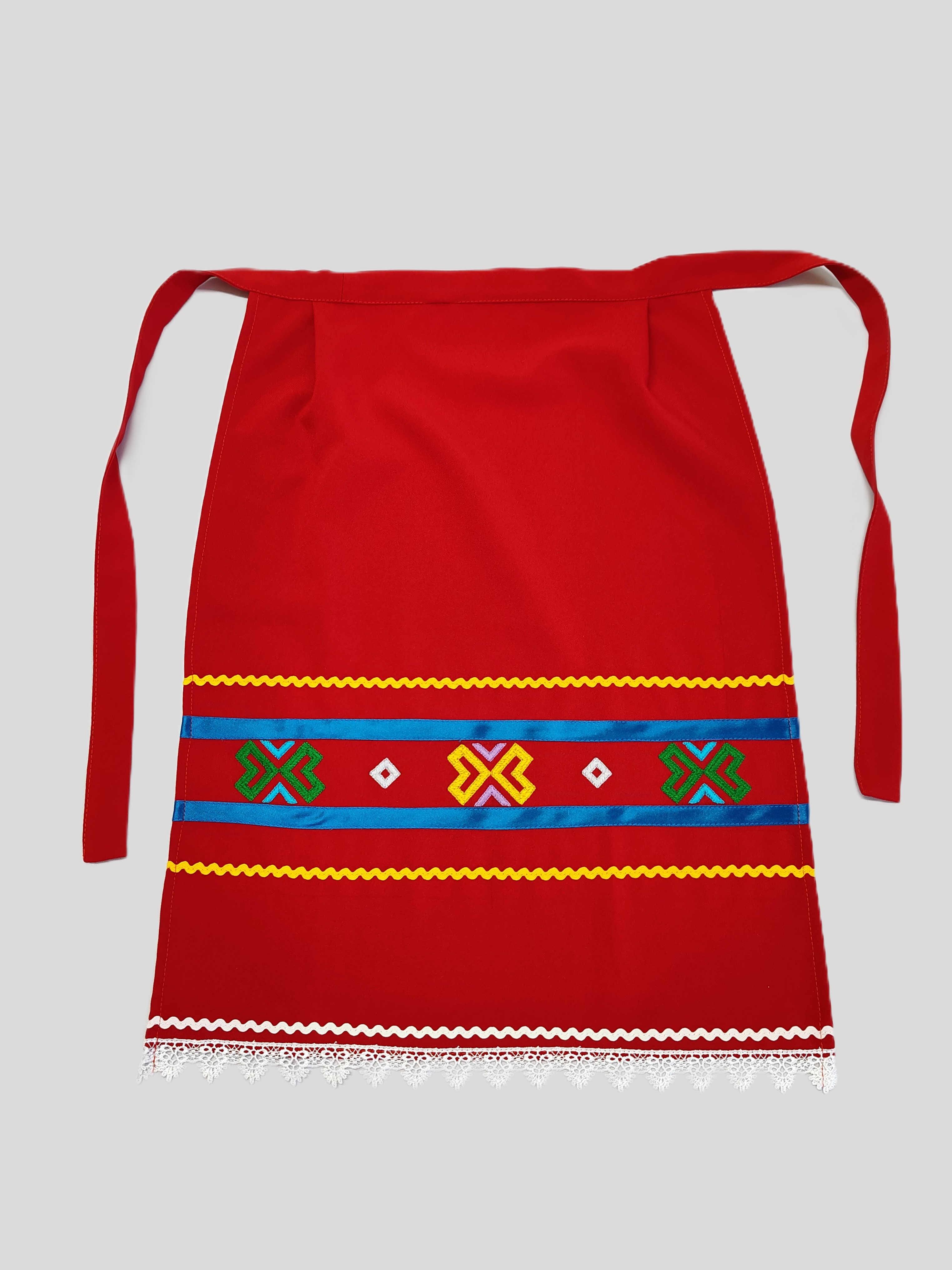Материал: габардин Машинная вышивка Размер: 66см*58см, красная отделка 12см, кружево...
