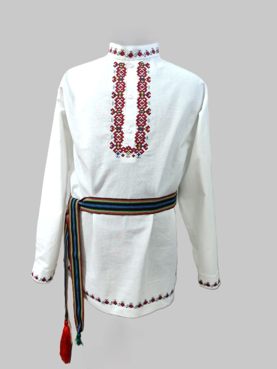 Фольклорная мужская рубашка с машинной вышивкой – это уникальный элемент гардероба, подчеркивающий индивидуальность и превосходный вкус владельца. Высокое качество материалов обеспечивает комфорт при носке и долговечность изделия. Рубашка станет прекрасным подарком для ценителей народной культуры и изысканности традиционных мотивов.